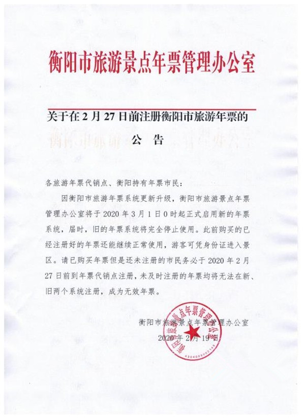 此前購買的已經注冊(cè)好的年票還能繼續正常使用,遊客可憑身份證進入景區。已購買年票但是還未注冊(cè)的市民務必於(yú)2020年2月27日前到年票代銷點注冊(cè),未及時注冊(cè)的年票将成爲無效年票。