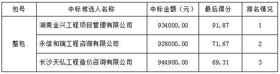 成交供應商名稱: 湖南金興工程項目管理有限公司