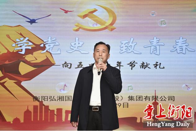 ▲活動(dòng)現場(chǎng) 4月29日下午,在五四青年節來臨之際,爲慶祝中國共産黨成立100周年,紀念五四運動102周年,衡陽弘湘國有投資集團有限公司在黨建活動中心舉辦“學黨史·緻青春——向五四青年節獻禮”主題活動,進一步引領青年幹部職工傳承與弘揚五四精神,激勵青年幹部職工聽黨話、跟黨走,增強青年幹部職工在工作中勇當先行、開拓奮進、建功立業的使命感和責任感。公司黨委副書記、總經理張雨民出席活動並緻開幕詞。