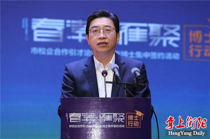 4月29日上午,“春潮·雁聚”博士行動——市校企合作引才洽談暨百名博士集中簽約活動在衡舉行,市委書記鄧群策在簽約儀式上向五湖四海的人才發出誠(chéng)摯邀請,期望各位才俊用所學所得的智慧之光,照亮深入推進“一體兩翼”建設的騰飛之城,在衡陽這片高質量發展的熱土上成就輝煌事業、書寫精彩人生。市委副書記、市長(zhǎng)朱健主持簽約儀式。
