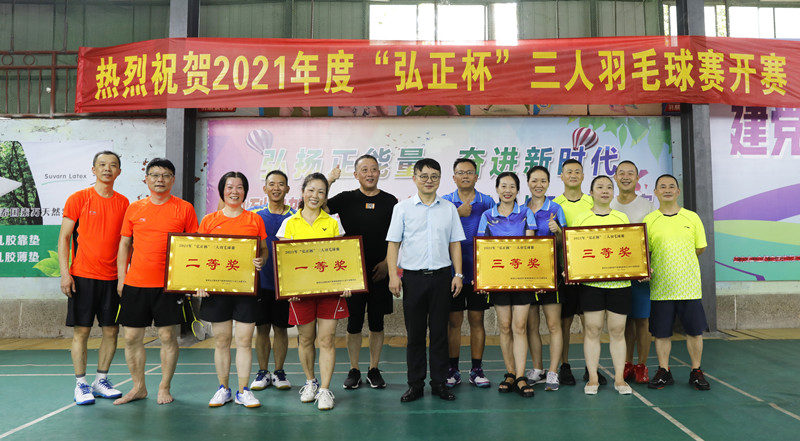 爲豐富廣大員工的業餘生活,強化員工身體素質,提升員工精神面貌 ,加強各園區、企業之間的情感交流,營造健康向上的企業文化,日前弘湘國投旗下弘正公司2021年度“弘正杯”三人羽毛球比賽在衡拖羽麒乒羽俱樂部舉行,12支隊伍36名運動員參與本次賽事。弘正公司領導班子及各企業負責人莅臨比賽現場。
