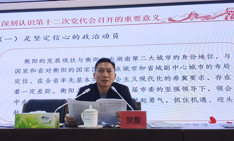 劉軍要求,全部幹部職工要深刻領會貫徹衡陽市第十二次黨代會的精神内涵。要豐富方法途徑,在理論上更懂,發現學深悟透的新視角,保持對黨的絕對忠誠,懷揣理想情懷、家國情懷和爲民情懷,立足弘湘國投職能,著(zhe)重領悟“三高四新”和“三強一化”宏偉藍圖中涉及企業改革發展的重要論述。要結合過去将來,在思想上更清,從自身實際出發,結合衡陽和弘湘國投的發展規劃,提高自身的思想認知,明確(què)今後的工作方向和重點,立足本職工作,敢擔當、重團結,開拓創新,砥砺前行。務必細照笃行,在行動上更強,積極響應市委市政府、市國資委、公司黨委的号召,對标對表、奮力拼搏,落實公司各項工作,做好公司改革轉型、資産開發提質、資金增收降債、資源升利降閑工作,切實打開弘湘國投新局面、展現新風貌,實現公司高質量發展。