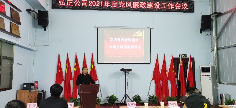 爲進一步加強公司黨風廉政建設工作,12月28日,弘正公司由公司黨委主辦、華翔支部承辦,召開瞭2021年度黨風廉政建設工作推進會,對12個基層黨組織和重點領域工作人員開展黨風廉政教育及相關培訓。