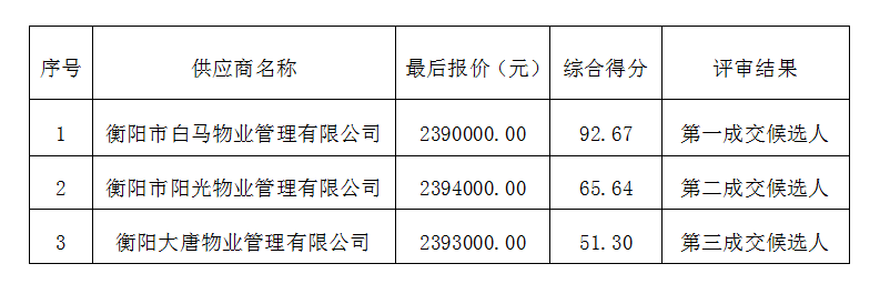 成交供應商名稱:衡陽市白馬物業管理有限公司