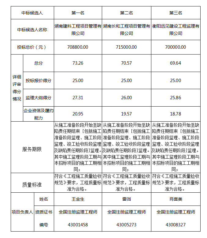 根據招标投标相關法律法規及招标文件的規定,衡陽(國際)眼鏡小鎮首開區創意中心新建項目監理評标工作已經結束,評标委員會按照招标文件規定的評标辦法及原則進行評定,推薦中标候選人排名如下 :