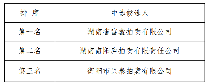 門面、房屋資産拍賣項目於2022年11月15日上午9時00分(北京時間)進行瞭比選開标、評标活動,評标委員會按照比選文件規定的評标辦法及原則進行評定,推薦中選候選人排名如下:
