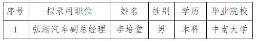 衡陽弘湘汽車科技有限公司拟錄用人員公示公告