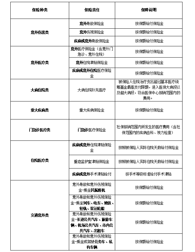 (4)保障内容具體(tǐ)如下表: