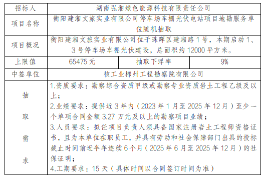衡陽建湘文旅實業有限公司停車場車棚光伏電站項目勘察服務随機抽取結果公示