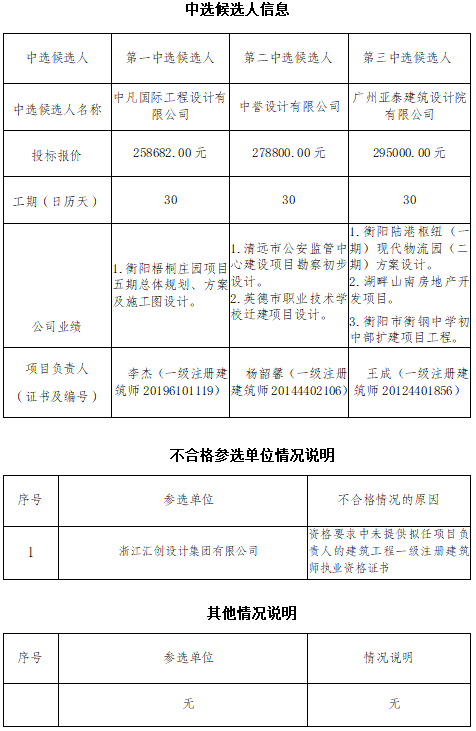 衡陽(國際)眼鏡小鎮定制廠房一期項目方案設計於2026年1月23日在衡陽國投4棟3樓評标室進行瞭比選開标、評标活動,評标委員會按照比選文件及相關法律法規規定進行評審 ,推薦以下三名中選候選人(排序),現将相關信息予以公示 。
