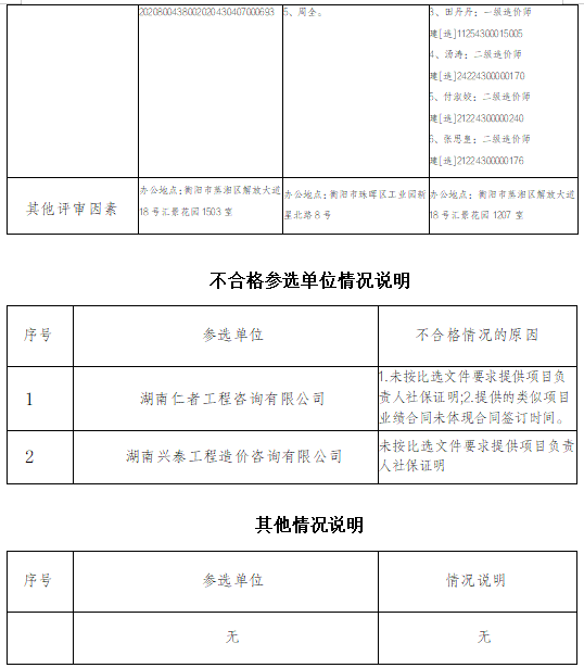 衡陽(國際)眼鏡小鎮首開區示範标準廠房(A地塊)新建EPC項目造價咨詢審核(複審)服務單位比選於2026年3月19日在衡陽國投4棟3樓評标室進行瞭比選開标、評标活動 ,評标委員會按照比選文件及相關法律法規規定進行評審,推薦以下三名中選候選人(排序),現将相關信息予以公示。